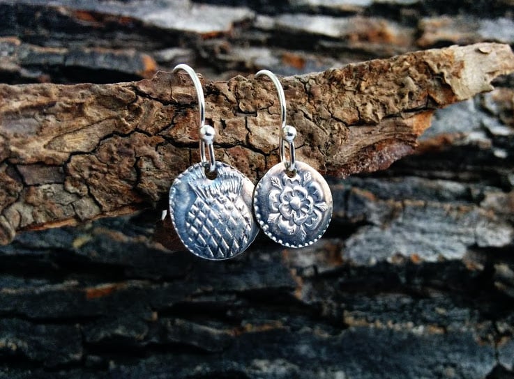 James I Tudor Rose & Thistle Halfpenny Earrings